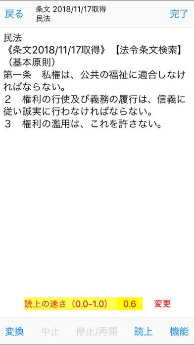 法律に関する文章はとにかく膨大ですから、ながら作業で法律知識を貯めることができれば効率的です。「読上六法」は画面下部に表示される「読上」をタップすることで条文を読上げてくれますから電車の中でイヤホンをしながら条文を聞くこともできます。