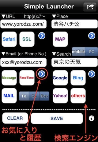 検索エンジンや地図等の機能を一括管理出来る「シンプル ランチャー」はテキストやURLを入力するだけで簡単に各ツールを起動していけるスマホカスタマイズアプリで、FaceTimeやメッセージ等の様々なコンテンツを網羅している特長があります。入力した情報や数値を履歴に残しておく事が可能ですし、よく利用するツールをお気に入りに登録出来るのが機能のメリットでしょう。お気に入りに保存した情報や履歴をメールに送信出来るようにもなっています。