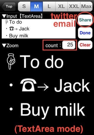 画面に入力された文字が見えにくい時に大きく拡大できるアプリ「入力文字拡大 Zoom On Input」は、ただ小さい文字を大きく見やすくするだけではなく、 iOS5内蔵辞書搭載なので拡大した文字を長押しすると言葉の意味が表示されます。さらにもっと詳しい情報を知りたい時はその文字を即web検索できる機能付き。 いったん拡大した文字は自動で記録保存されるため再度表示ができますが、別機能のお気に入りリストに登録することも可能です。改行での文章入力ができますので、 覚えておきたい言葉や文章をスクリーンショットで残して壁紙として設定すれば、待ち受け画像などに使用することで簡易メモとしても活用できます。またこれらの文章をメール送信やSNSへの投稿も可能なのでとても活躍度の高いアプリです。