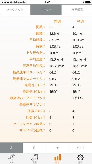 見やすいサマリーも用意!先週と今週の記録比較も行える!