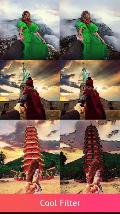 その写真には、友達が自分の顔を映画スターと交換して、後ろ姿が自分と違う動作をして、カラフルなファンタジー世界で散歩して、世界各地に旅行したことが多いですね。