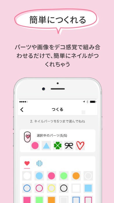 - パーツや画像をデコ感覚で組み合わせるだけ!簡単ゲーム感覚で簡単ネイルがつくれちゃう。
