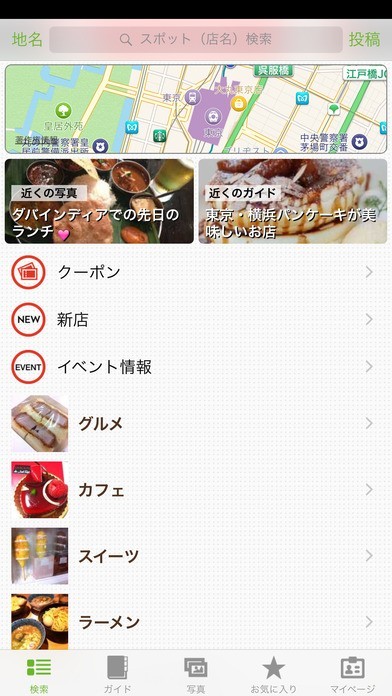 人気スポットを集めたガイド機能もあるので、簡単に調べられる