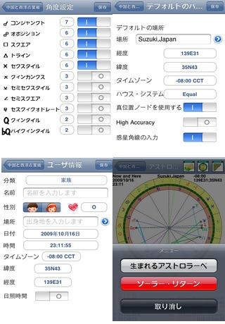 アストロラーベの起動や計算は正しく、はやいです。東南アジアの経緯度データ、9 ハウスシステム式、11種角度設定、誤差度設定、およびリリス、フォーチュン、北交点、南交点等の様々なプラネット設定が用意されましたので、お好きな占星術が簡単にできます。その他、ソーラー-リターンにのサポートもできます。