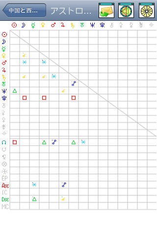 4. アストロラーベの中に全てのプラネット角度関係がチェックできる。