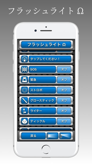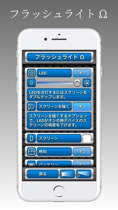 懐中電灯アプリ「フラッシュライト Ω」は、便利なLEDライト機能などを搭載しています。ライトの明度を簡単に調整できるため、お好みの明るさで使用できるのが嬉しいポイント。探し物をしている時にはくっきりと明るく、夜眠る前には控えめにと、使い分けできるのが特徴です。日常生活からアウトドアまで、多彩なシチュエーションで役立ってくれるでしょう。緊急用SOS機能も用意されており、ライトの点滅によってモールス信号の発信が可能。万が一の場合に活躍してくれます。また、ビデオ録画機能付ライターモードを使えば、コンサートやライブで活用できるようになっています。