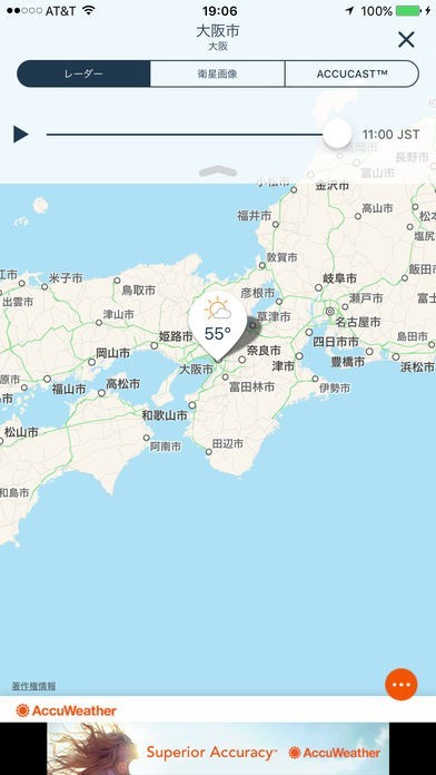 メリット:日本の天気予報だけでなく、世界中の天気予報を確認することができます。ビデオや衛星からの動画も見ることができアプリとなっています。
