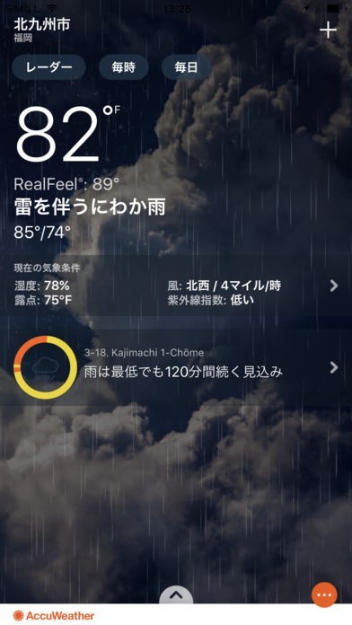2週間先の天候がチェック出来ると同時に、レーダーの表示に対応しているのも利点でした