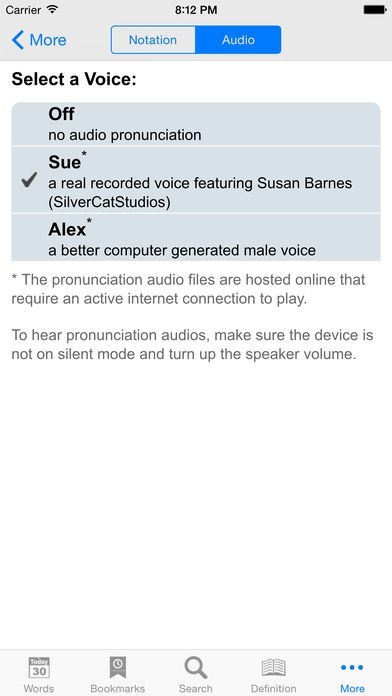 このアプリでは、それぞれの語句について、どのように発音すれば良いのかが正確に記述されているので、ネイティブスピーカーの人と同じように英語を使いこなすことに役に立ちます。