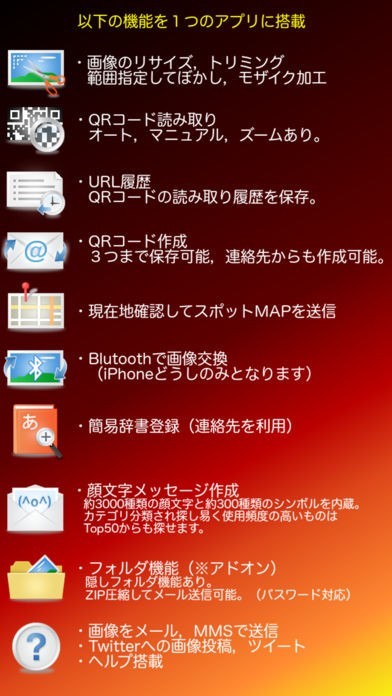 画像編集やQRコード生成、マップなど様々な便利機能を1つにまとめた統合アプリ!