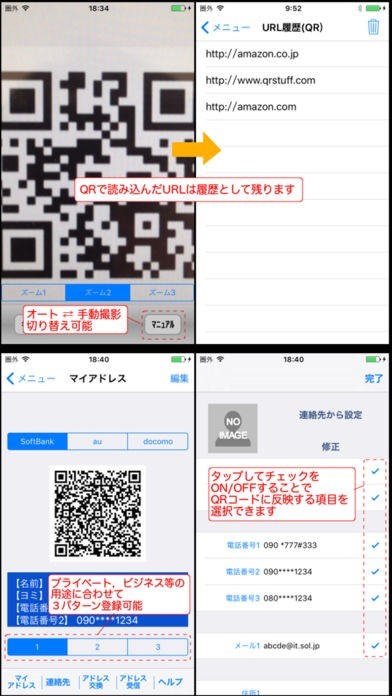 画像のサイズを変更したりトリミングしたりぼかしを入れたりという簡単な画像編集やQRコードを読み取ったり、QRコードを自分で生成したりすることも可能です。QRコードで一度読み込んだURLは履歴に残ります。