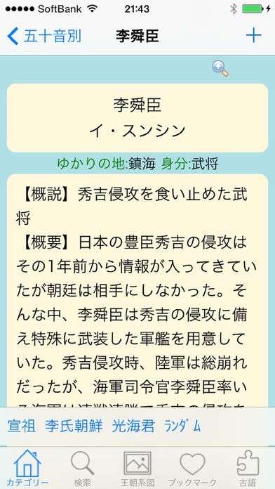 App Storeより引用※バージョン1.1より韓国古語リファレンスと歴代王朝系図を追加掲載致しました。