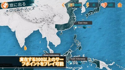 「The Journey」は本物の波を手軽に体験できるサーフィンゲームです。実際に存在するロケーションを300以上も収録しており、個性豊かなサーフィン体験が可能です。