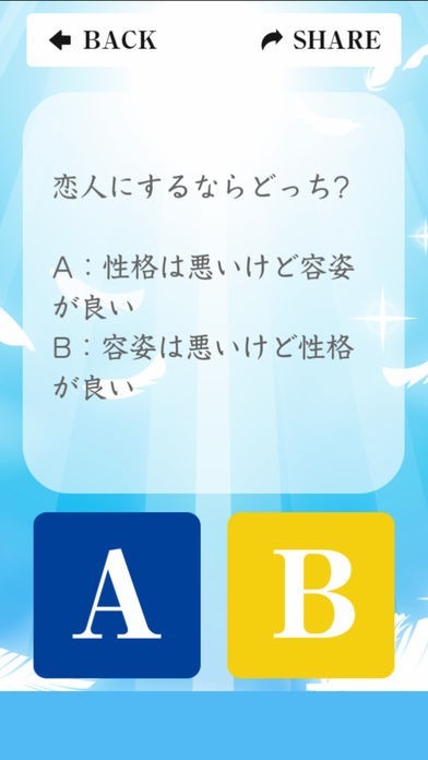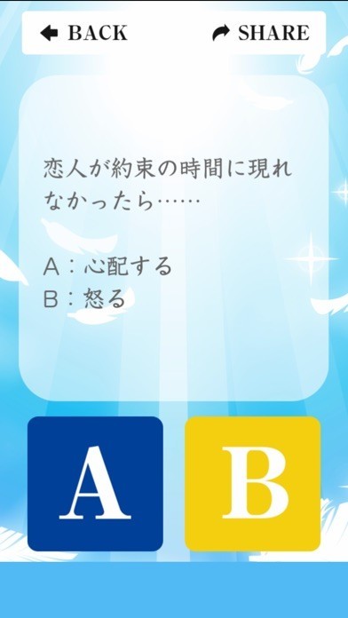 表示された質問には、【A】【B】のボタンを利用して回答していってくださいね。