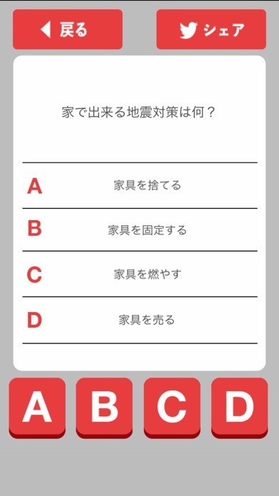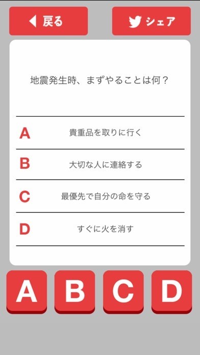事前にこのアプリで診断しておくことであなたが実際非常時にはどうすればよいか知る事ができます。何かがある前に一度このアプリで診断しておくと安心する事ができるでしょう。