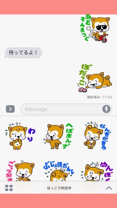 App Storeより引用秋田県の方言 秋田弁のスタンプです。かわいい秋田犬の他にも、ハタハタやきりたんぽも登場します。めんけぇがらみんなしてなんとが使ってけれなぁ。
