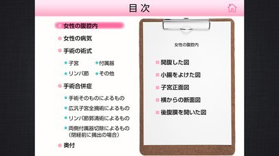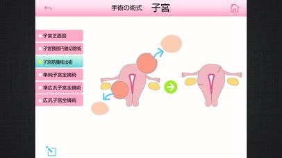 App Storeより引用婦人科の手術を要する病気、がん、筋腫などの解説と術式をわかりやすいイラストで解説。