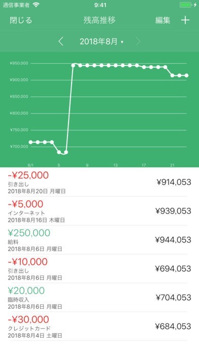 支出と収入の入力で残高が表示される