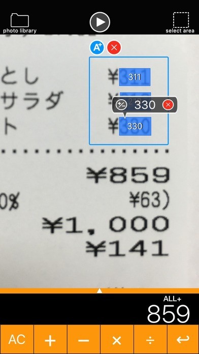 App Storeより引用『Camera calculator』はカメラを使って得た映像、または保存された画像に対して 指定した範囲にある数値を認識させて計算を行うためのアプリです。