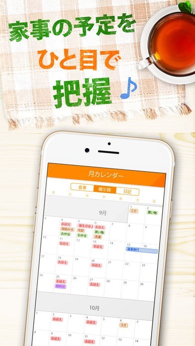 現在、自宅にある食材のリストを作成したり買い出し時の買い物リストを作成して買い忘れを防止することもできます。カレンダー機能では、そのほか家事の備忘録や日記もつけられるようになっており主婦(主夫)の強い味方となるツールです。