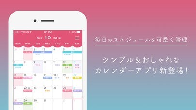 予定を色分けして登録することができるので、見ただけで瞬時にどの予定がせまっているのか確認することができます。スケジュール管理がより楽しく楽になることまちがいなしです。