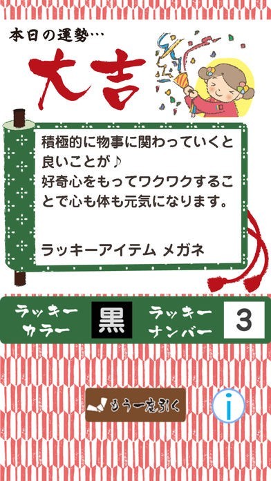 おみくじを持ったなごみちゃんをタップすると、かわいいアニメーションの後に結果が表示されます。