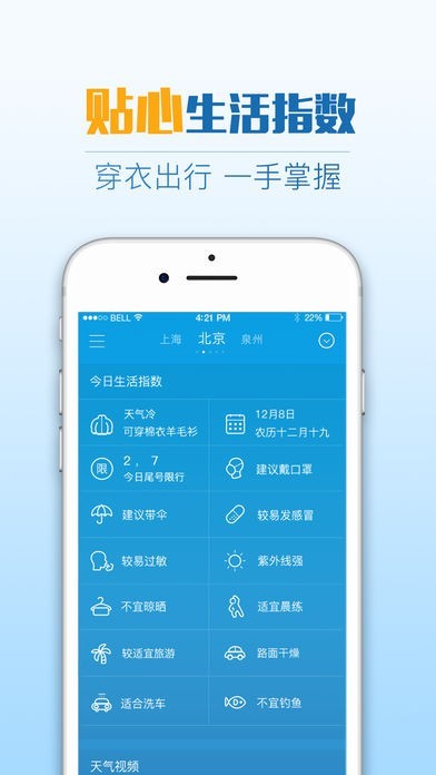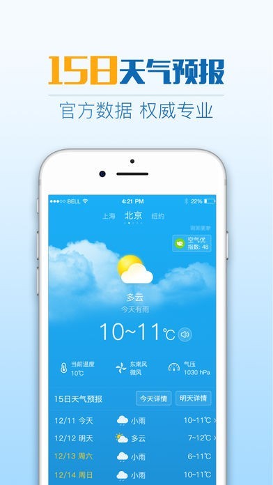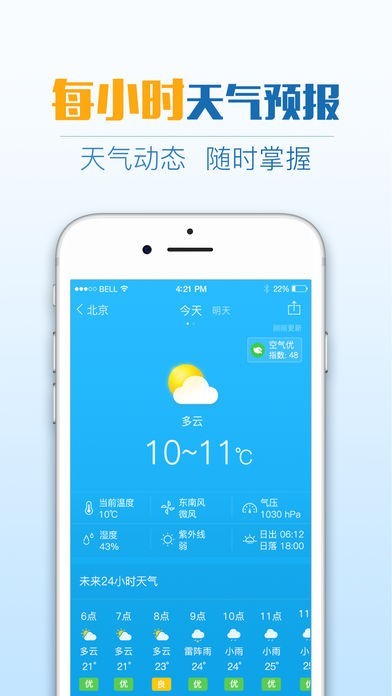 天气预报是一款轻量级应用,知冷暖,报晴雨,外出旅行、上班出门必看的天气利器。