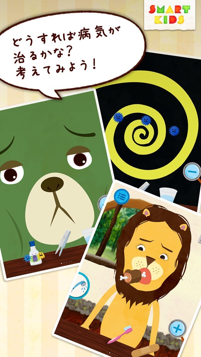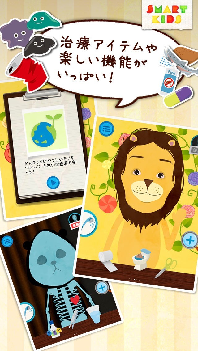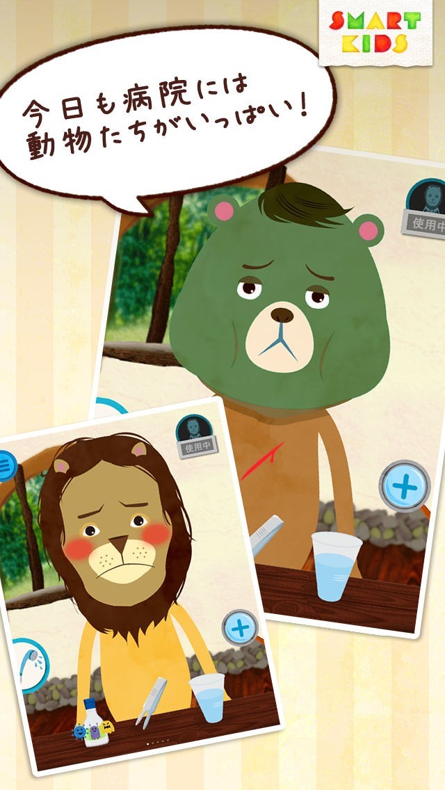 キッズアニマルドクター 〜どうぶつ達の病気や怪我を治そう!考えながら遊ぶお医者さんごっこ知育アプリ〜のスクリーンショット