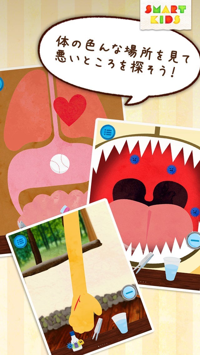 キッズアニマルドクター 〜どうぶつ達の病気や怪我を治そう!考えながら遊ぶお医者さんごっこ知育アプリ〜の特徴・編集部レビュー
