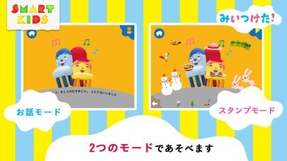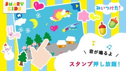 絵本の中に自由にスタンプを押して楽しむスタンプモードが搭載されています。スタンプを押すたびに鳴るユニークな効果音とカラフルで可愛いイラストで音や色に敏感な赤ちゃんから楽しめます。