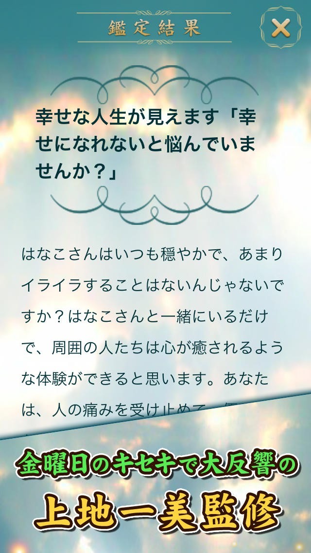今から訪れる幸福な人生のすべて~名前と誕生日で占う上地一美の奇跡未来鑑定占い。今年こそ幸せになれる!のスクリーンショット