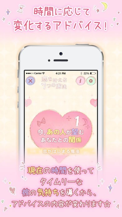 「恋を叶える7つの魔法」は、こんな想いを持ったすべての恋する女性に贈るアプリです。