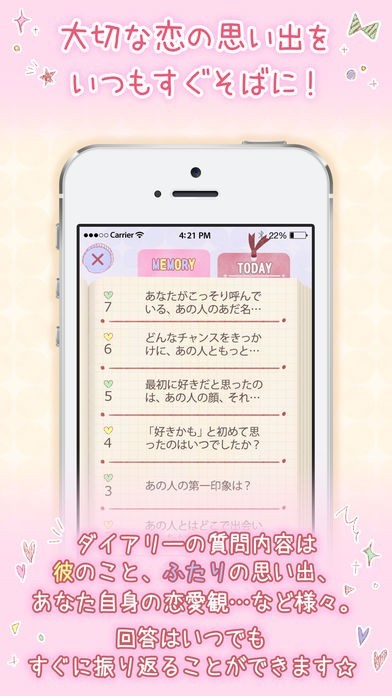 ・質問内容は好きな人のこと、ふたりの思い出、あなた自身の恋愛観…など様々