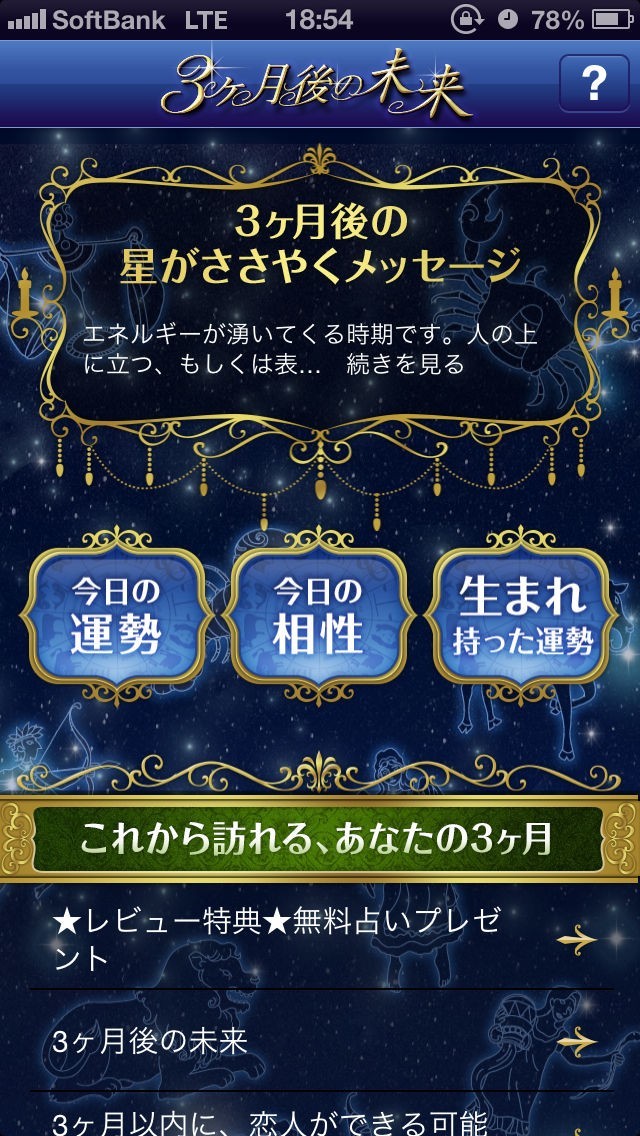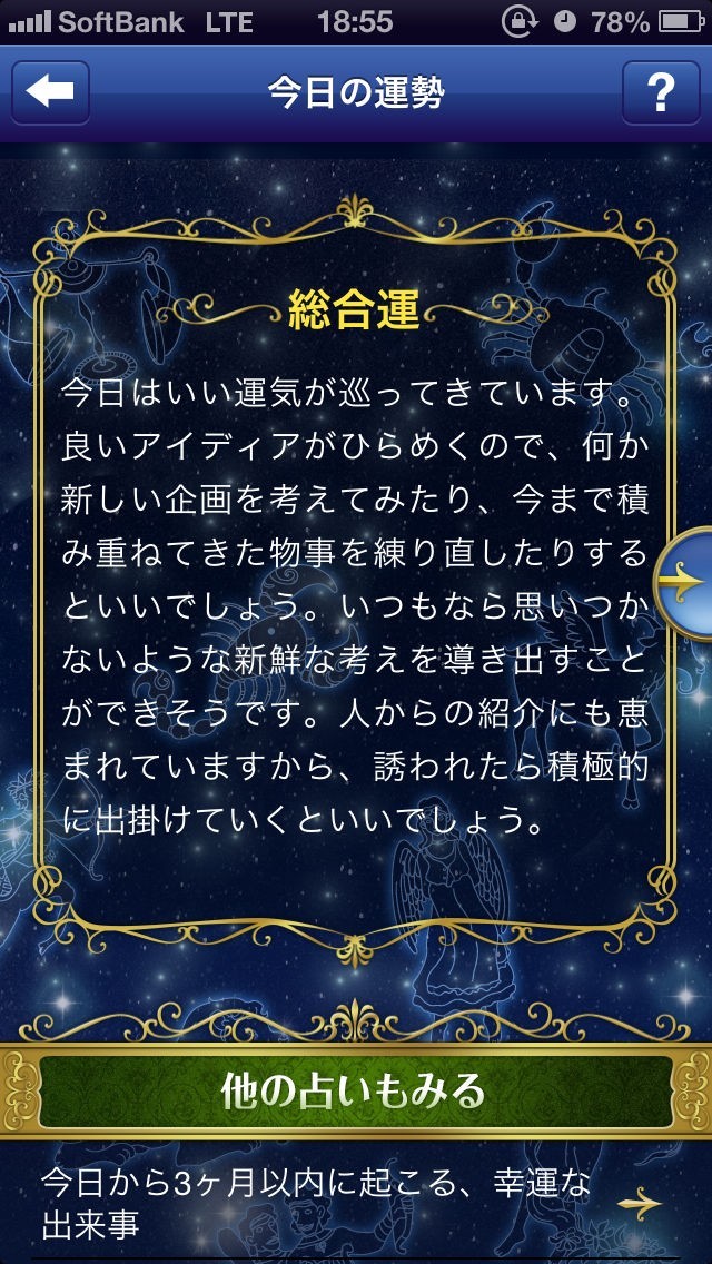 3ヶ月後の未来を知ることができるだけではなく、「今日の運勢」も把握できる