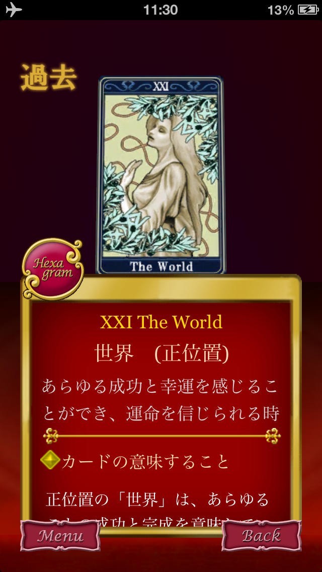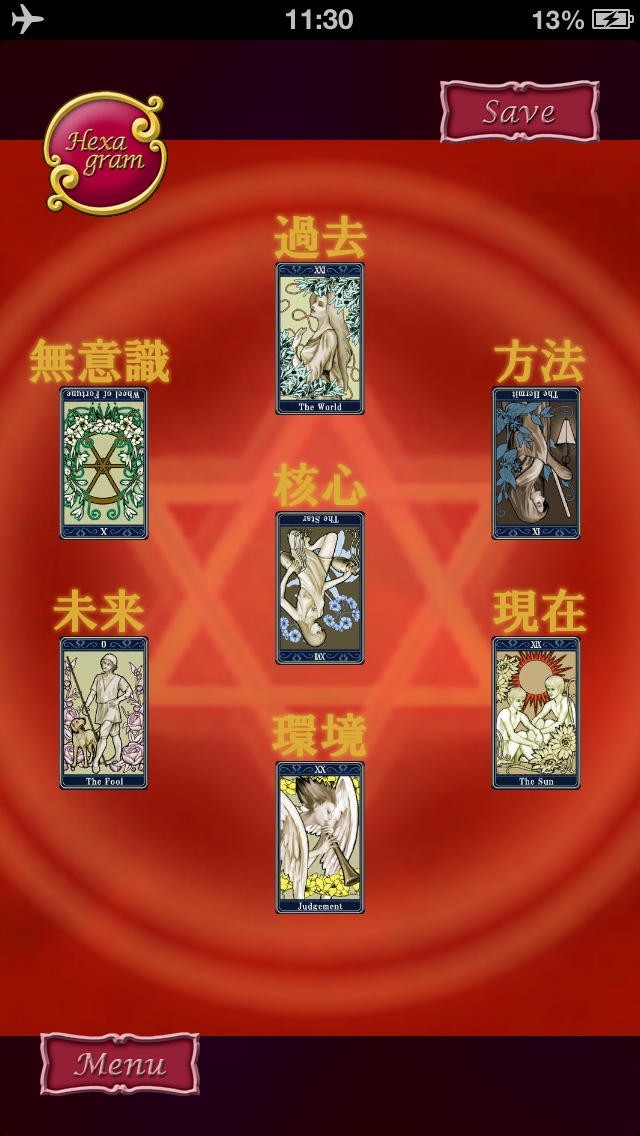 タロット占いPlusは、対面鑑定をイメージした本格的なタロット占いが楽しめます。画面上のカードにタッチして簡単に選択したり混ぜたりします。カードを触っている感覚でタロット占いが再現されるので、悩みがあるときも結果が出てくるまで見ていてワクワクし、楽しくなります。 画像は、グラフィックでアートな世界に引き込まれていきます。カードの意味が出てくるので、タロットカード初心者でも安心して参加できます。 2つの占術機能のキサグラムとパーソナルカードで、自分自身だけでなく、友達の分の占いも可能です。