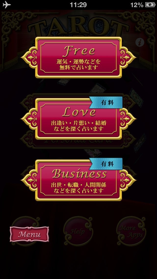 シリーズで380万ダウンロードを達成したこのアプリを使うことによって、対面鑑定で本格的な雰囲気の中で、自分でカードを選ぶことができるので、結果も信憑性が高いです。 よって、ターゲットはタロット占いに興味を持っていて体験してみたい方が当てはまり、無料で今日の運勢を占ってもらえるので、一日一回メールをチェックするように習慣づけることによって、その日に気をつけなければならないことややったほうがいいことなどを把握できるので、その日を安心して過ごせます。 他にも有料で「LOVE」をタップすると恋愛に関する占いを見れるので、ターゲットは片思いをしている方、恋人を探している方があてはまり、うまくいく可能性を高めてくれます。