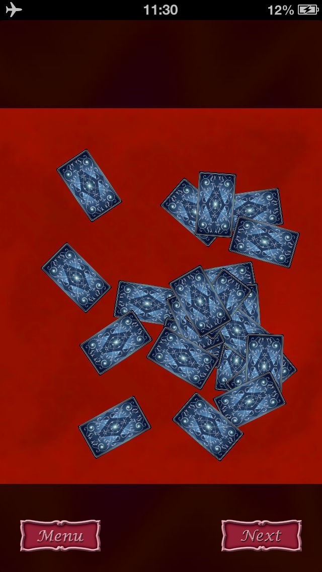 悩みがあるときに画面上のカードにタッチしてカードを触っている感覚でタロット占いが再現される