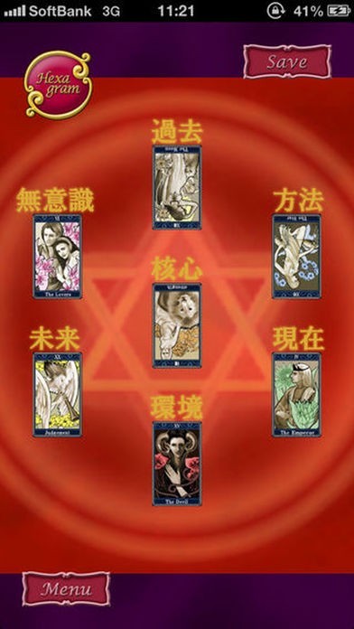 状況に応じてカードの並べ方を選ぶことができます。ヘキサグラム、セブンテーリング、パーソナルカードの3つの占術から状況に合わせて使い分けましょう。より的確で意味深い占いができます。