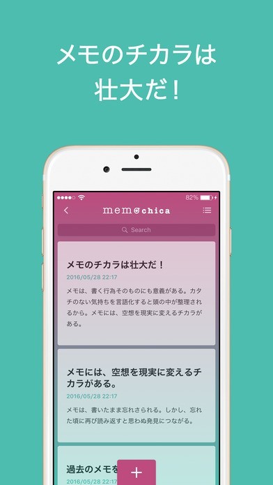 ふとした時に考えたこと、思いついたことを書き留めることができるのが「メモチカ - 思わぬアイデア・発想支援」の魅力です。アプリを起動することによって簡単に使えるシンプルな作りをしているため、感覚的に利用できる利点があります。また、一度メモした情報は過去のメモまで遡って見直すことができます。メモとはいっても、単純なアイデアだけではなく日記やメールの保存も可能ですし自分でタイトルを付けることも可能です。保存した情報を、ツイッターなどのSNSを利用して他の人と共有する機能もあります。保存した情報は並列的に同時に確認することもできますので、忘れてしまったことでも簡単に過去のメモから探すことができます。