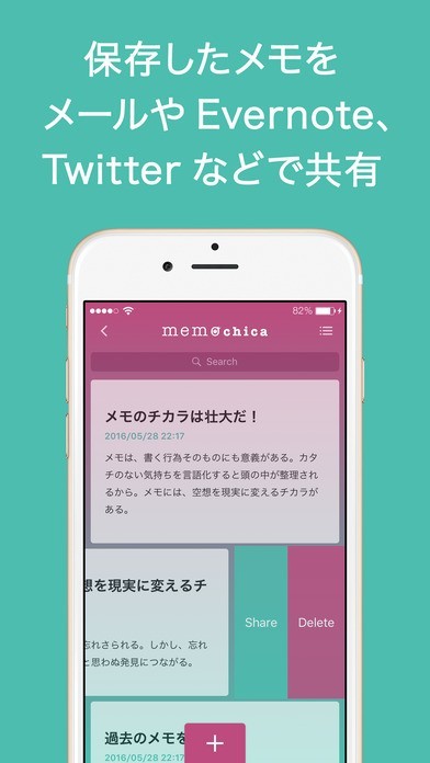 SNSへの共有も簡単!時系列でメモを管理出来るのでデータの整理に役立つ!