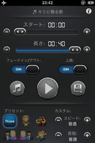 ☆ 再生スピードや音のピッチを変えて、楽しい着信音が作れます。男性アーティストの声を女性の声に変えたり、その逆も!スピードを速めれば、カントリーミュージックがクラブダンスミュージックに早変わり!