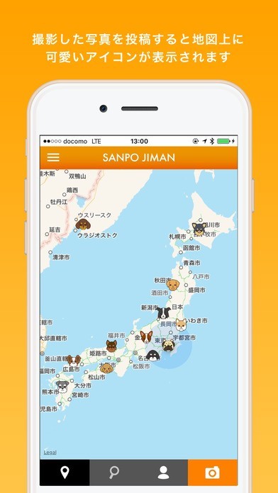 自慢の愛犬との散歩は心を癒してくれるもの。可愛い散歩中の写真をスマートフォンで撮影してほかの人に見てもらいたいという人も多いでしょう。このさんぽじまんは、そんな自慢の愛犬の可愛らしい散歩写真をほかのユーザーにも見てもらうことができるようになるアプリです。愛犬を撮影してマップに貼ることで地図上にアイコンが表示されるようになり、愛犬の姿やお散歩コースを公開して、ほかのユーザーからコメントやいいねを貰うことができるようになります。
