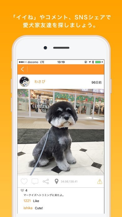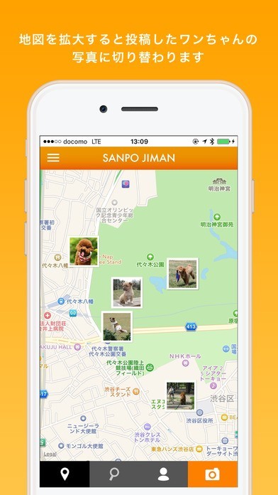 愛犬の散歩中の姿をほかのユーザーに公開してコミュニケーションをとることができる!