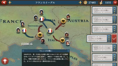 プレイモードには、歴史上の事件をキーポイントにしたストーリーモードと、軍事施設を拡張して自分なりの作戦で隣国を征服していく「征服モード」があるので、飽きずに長く楽しめます。