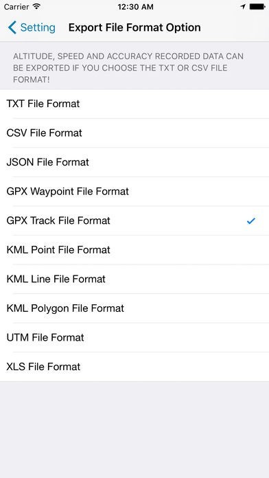 スマホの移動記録はTXT,CSV,JSON,XLS,GPX,KML,XLS,UTM 7などのファイル形式に保存可能です。他のソフトでスマホが移動した軌跡を分析・活用することができます。