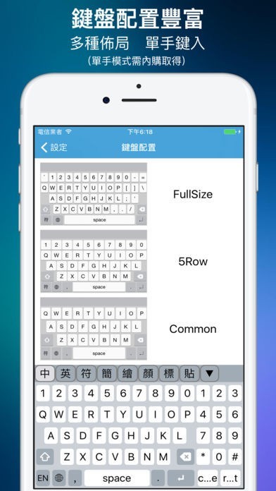 6. 單手模式(可將鍵盤縮至單手可觸控範圍,在iPhone 6/7 Plus上尤其好用。)