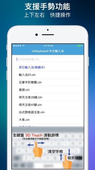 UrKeyboard輸入法是一套完美支援全系列iPhone/iPad的中文輸入法(支援蝦米、行列、大易、許式、倚天等)…可支援中/英混輸、切換鍵盤配置(五行、行列)、智慧鍵盤功能、外部APP匯入字典檔等等…