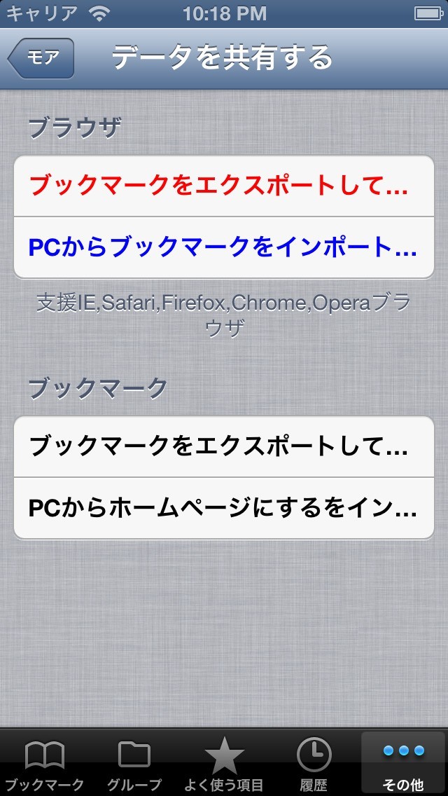 パスワードを設定できるので、大変助かっています。 Safariからのブックマークを簡単にインポートできたら、もっといいなぁと思います!