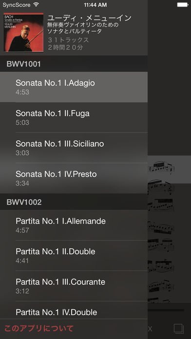 バッハ、ヴァイオリンソナタとパルティータ - シンクスコアのスクリーンショット