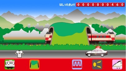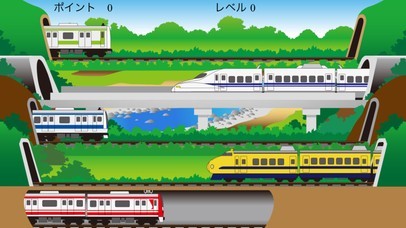左右のトンネルから出てくる電車や新幹線をタップすると超加速で通過していきます!